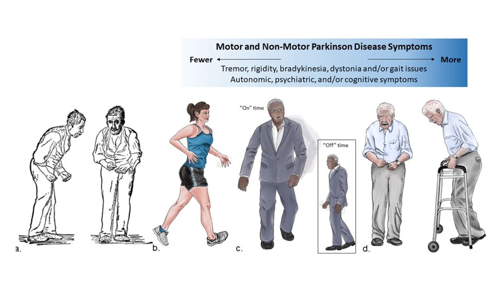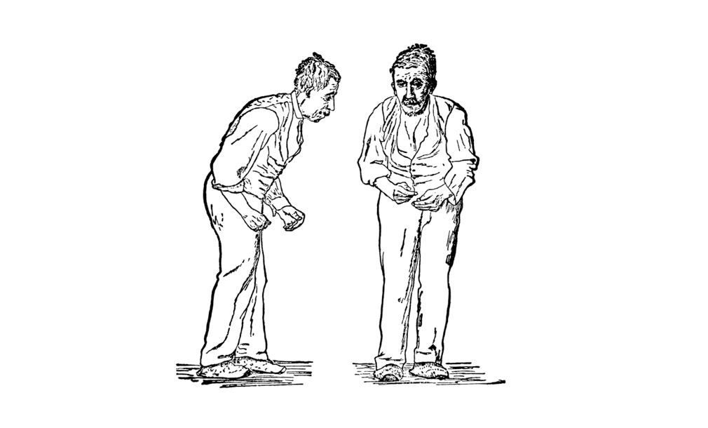SOURCE: Front and side views of a man portrayed to be suffering from Parkinson's disease. These are woodcut reproductions (of two collotypes from Paul de Saint-Leger's 1879 doctoral thesis, Paralysie agitante..etc.) published in Gowers, William Richard (1886). "Fig 145 — Paralysis agitans. (After St. Leger.)". A Manual of Diseases of the Nervous System. II. London, United Kingdom: J. & A. Churchill. p. 591. Retrieved 2011-03-24.