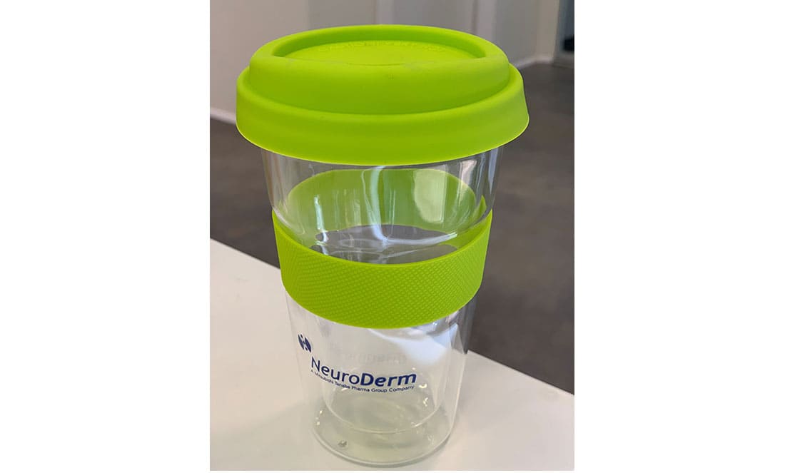 Employees at NeuroDerm are given personal mugs in order to reduce the use of disposable cups